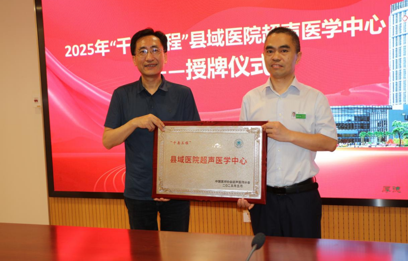 2025年5月24日,中国医师协会超声医师分会在丰都县人民医院举行“千县工程”县域医院超声医学中心授牌仪式暨学科建设座谈会。北京大学人民医院朱家安教授代表协会向丰都县人民医院授牌,超声医学科主任蔡兴文接牌。活动通过"授牌+座谈+实训指导"的形式,成功搭建起国家级优质资源与县域医疗机构之间的对接桥梁,为深化分级诊疗制度、推动区域医疗高质量发展提供了可借鉴的实践样本。